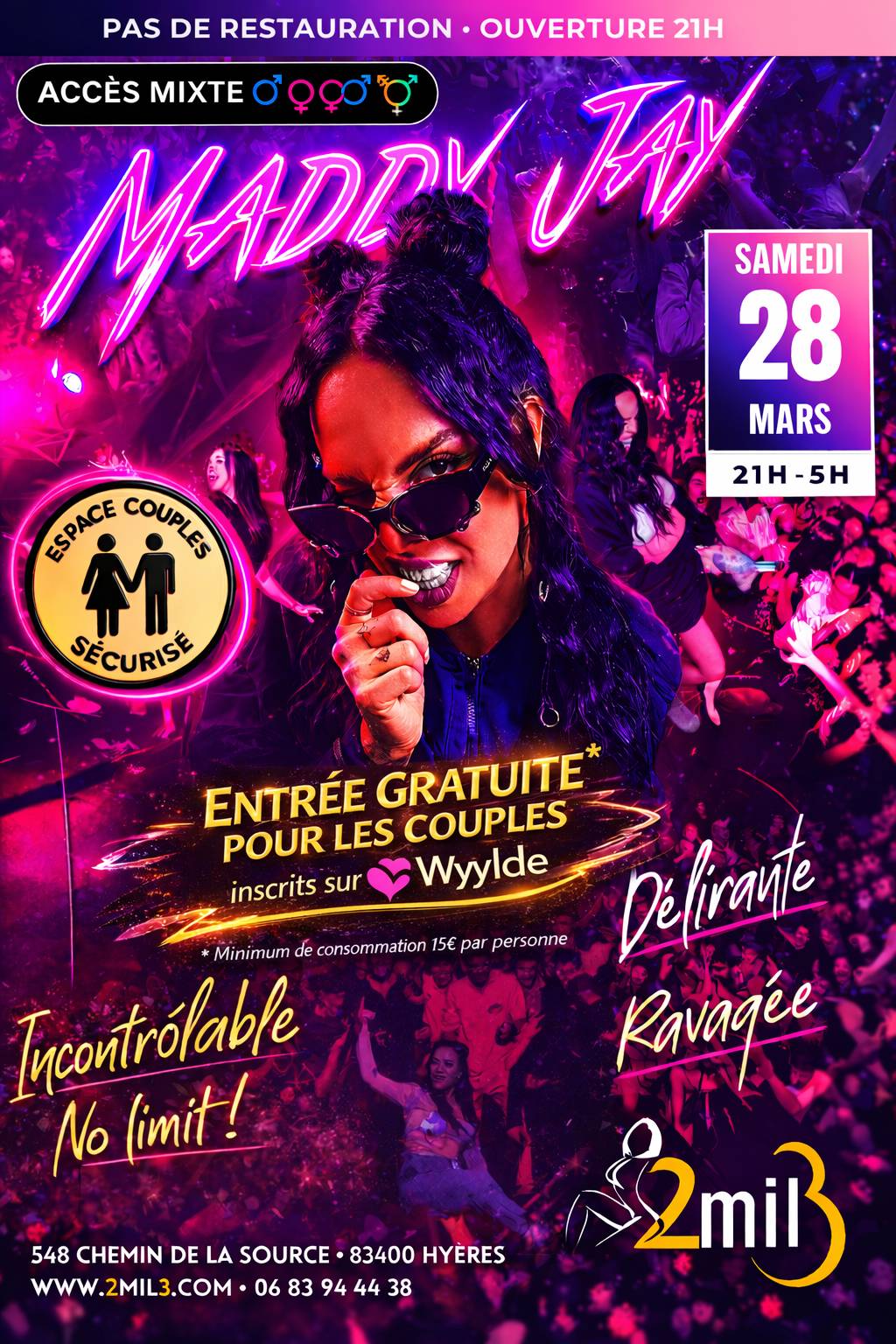 Que ce soit pour un rendez-vous, une rencontre fortuite ou une soirée intime avec des esprits non conformistes, le 2mil3 est un lieu unique pour une expérience unique, accueillant couples, femmes, hommes, travestis et transsexuels.